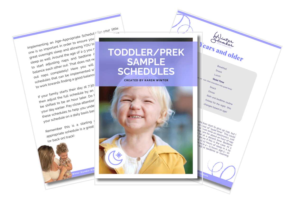 Get your free Toddler & PreK Sleep Sample Schedules and take the guesswork out of naps, bedtime, and everything in between.